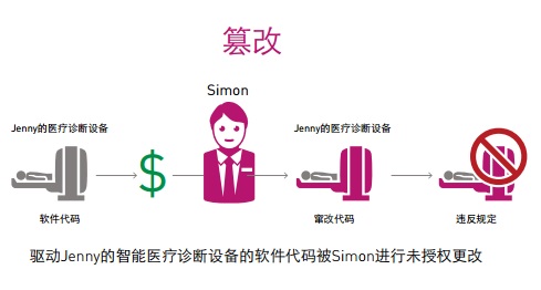 下述善意篡改的示例是醫療診斷設備。該內部軟件專為控制診斷測試運行而設計??赡苣硞€終端用戶認為系統過慢,決定篡改軟件代碼,只為使其計算加速20%。任務完成——他們現在每天可以檢查更多病人了。沒有惡意,隨便了。