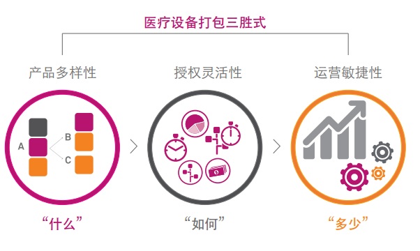 但是,提出這些問題只是成功了一半。一旦問題得到了解答,醫療設備供應商需要準備好合適的工具來做出行動。如果某個醫療機構只想要功能集合中的一部分,供應商需要能夠以較低的價格提供基本捆綁包。例如,如果某醫院或診所無法負擔一次性購買整套醫療設備的費用,供應商需發能夠提供訂閱或者按使用付費授權模式。采取行動的能力需要產品的多樣性、授權模式的靈活性以及業務的敏捷性。