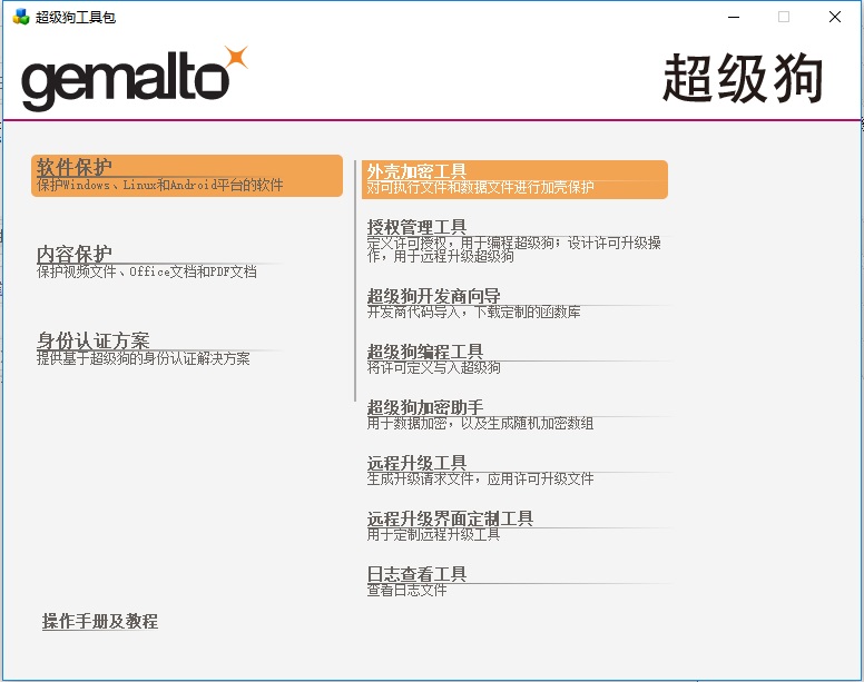 賽孚耐(金雅拓)超級狗是一款功能強(qiáng)大,加密強(qiáng)度高,操作簡單的加密狗,尤其是外殼加密工具,它除了能對普通windows程序加密外,還可以加密安卓程序,通過數(shù)據(jù)加密方式加密視頻、文檔、Flash等多媒體文件,以及AppOnChip方式實(shí)現(xiàn)程序代碼在加密狗中運(yùn)行。