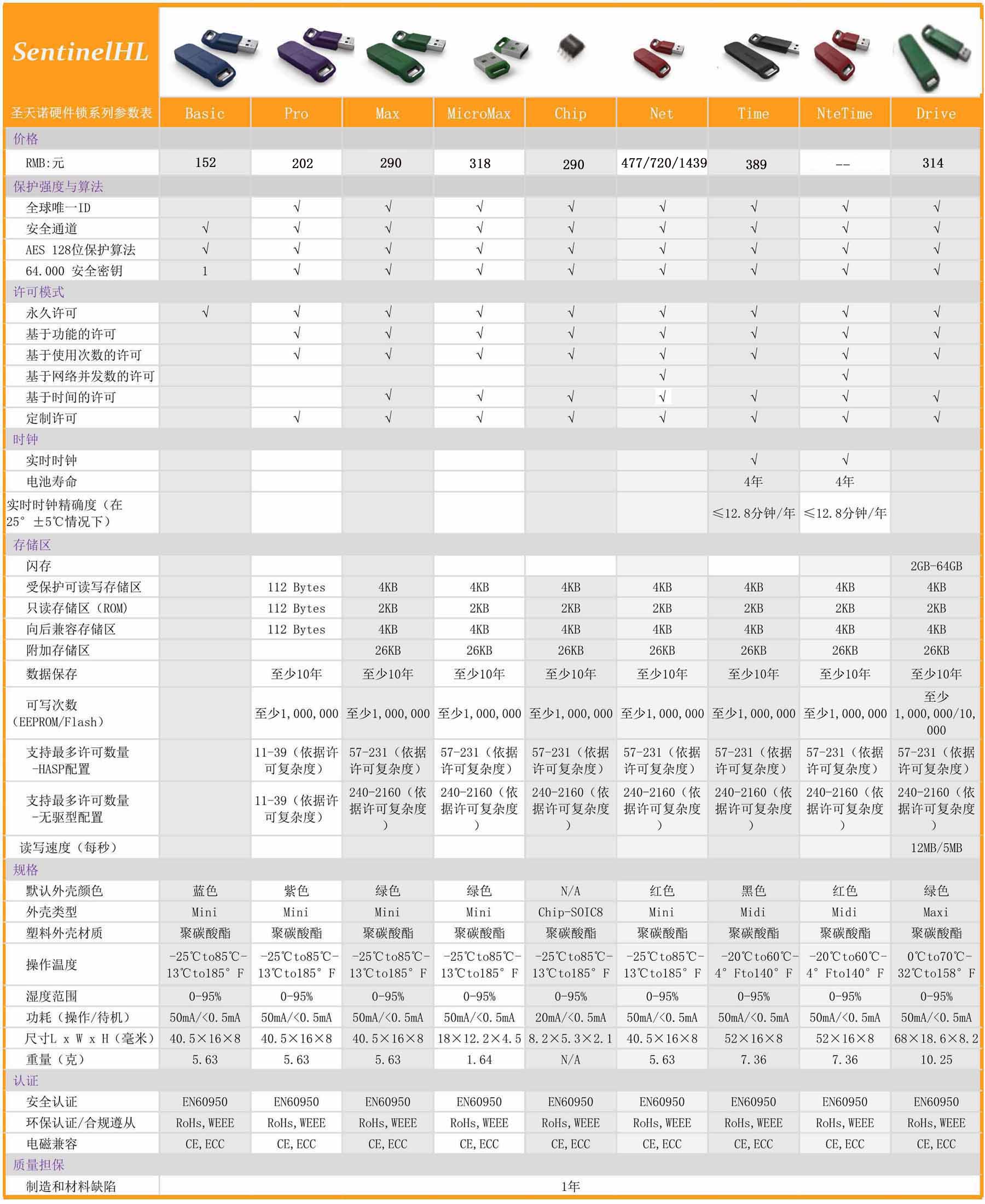 圣天諾Sentinel LDK硬件加密鎖各型號(hào)性能對(duì)比圖