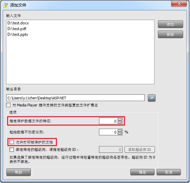 可以用指定的特征來(lái)保護(hù)您的 Office 文檔和 PDF 文檔,特征的缺省值是 0,被保護(hù)的Office 文檔和 PDF 文檔在打開(kāi)時(shí)將在連接的超級(jí)狗中搜索為其指定的特征。