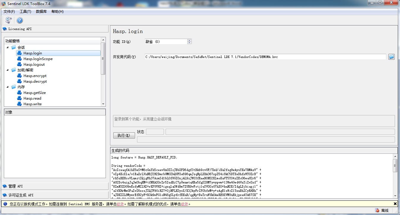 在Sentinel Ldk開發(fā)包安裝目錄C:\Program Files (x86)\ Thales\Sentinel LDK\Samples\Licensing(LDK9.0之前是\Runtime目錄)下有對應(yīng)的開發(fā)語言的完整示例,這些示例編譯以后,可以直接通過demo號的加密狗來調(diào)用測試,示例目前覆蓋主流的開發(fā)語言。如果用正式開發(fā)鎖來調(diào)用這個demo程序,需要做一些修改工作。