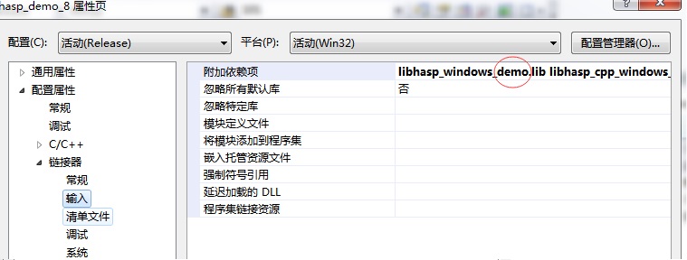 2、C++開發(fā)語言的修改過程:用記事本打開正式號密鑰文件xxxxx.hvc,把內(nèi)容全部復(fù)制,找到示例目錄中的vendor_code.h文件,把hvc文件中的內(nèi)容替換到“unsigned char vendorCode[] =”后面的引號中,然后點擊“項目”-“屬性”,在"Link"的輸入項中添加依賴庫libhasp _windows_xxxxx.lib,并把原來的依賴庫libhasp _windows_demo.lib刪除,然后重新編譯生成即可。注意這個libhasp _windows_xxxxx.lib庫應(yīng)同時拷貝至工程文件所設(shè)置的依賴庫目錄列表中。然后重新編譯示例即可運行。