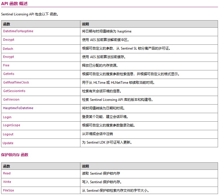 關(guān)于每個函數(shù)的詳細(xì)說明及返回參數(shù),請參閱安裝目錄C:\Program Files (x86)\Thales\Sentinel LDK\Licensing\C或\ DotNet中的幫助文件。(注:LDK9.0之前的目錄是C:\Program Files (x86)\Thales\Sentinel LDK\Licensing\Runtime\C或\ DotNet)
